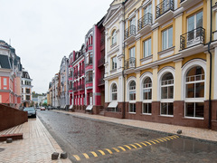 За яскравими фасадами практично нікого немає, хоча до кризи 2008 року планувалося, що тут, у 15 хв ходи від центру Києва, будуть охоче заселятися заможні люди. Зараз він схожий на знімальний майданчик фільму з життя позаминулого століття. Цей район у давнину був місцем, де проживали сировари, гончарі і майстри.