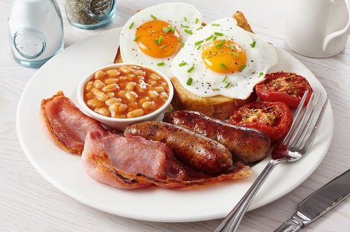 Для англійців сніданок має кілька варіантів: перший складається зі смажених помідорів, сосисок, яєць і бекону — досить щільний і калорійний сніданок. Другий варіант — знаменита англійська вівсянка і круто зварене яйце. В якості ранкового напою англійці вибирають чай, каву або сік.