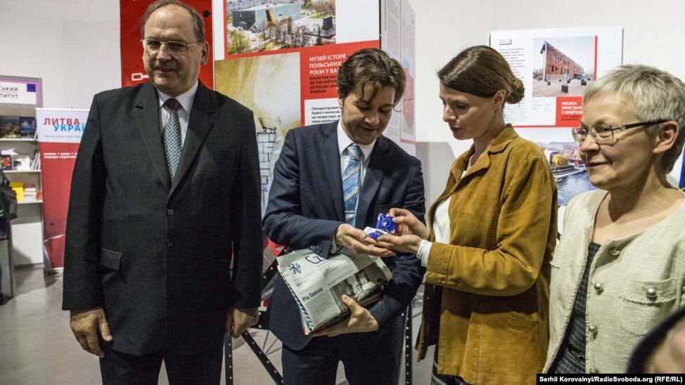 Директор Чеського центру в Києві Люція Ржегоржикова розмовляє з новопризначеним міністром культури України Євгеном Нищуком
