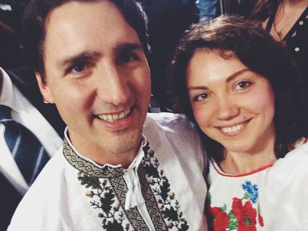 Джастін Трюдо робив “селфі у вишиванці” з усіма охочими, чим зокрема скористалася українська журналістка Галина Каплан.
