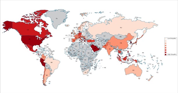 Зазначається, що найменш чуйними були названі жителі Польщі, Литви, Естонії та Болгарії. Досить низький рівень співчуття був виявлений у Росії. Україна, поряд з багатьма іншими країнами, до списку не була додана.
