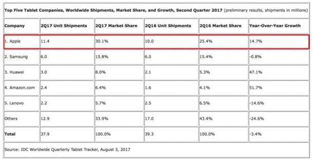 Лідером виявився iPad, частка продажу якого склала понад 30 відсотків.