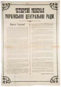 1918 року — Центральна Рада в IV Універсалі проголосила незалежність УНР. У будинку Педагогічного музею в Києві почалось закрите засідання Малої Ради, на якому було затверджено IV Універсал, що проголосив, що “… однині Українська Народна Республіка стає самостійною, ні від кого не залежною, вільною, суверенною державою українського народу…”.
