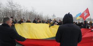 Як передає кореспондент УНІАН, учасники заходу мали при собі національну символіку Литви із зображенням жовто-зелено-червоного прапора та герба у вигляді лицаря верхи на срібному коні.