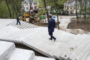 Триває облаштування території та реконструкція сходів Старокиївської гори від Пейзажної алеї до урочища Гончарі-Кожум’яки.