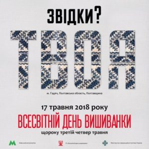 До дня свята “Київський метрополітен” запустив на синій лінії тематичний поїзд. У вагонах розміщені постери з орнаментами вишиванок різних регіонів України “Звідки твоя?”.