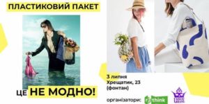 Зокрема, 3-го липня громадська організація «ReThink» та Національний конкурс краси “Міс Україна” проведуть акцію “Пластиковий пакет – це не модно”, щоб привернути увагу до бездумного та надмірного використання поліетиленових пакетів в Україні.