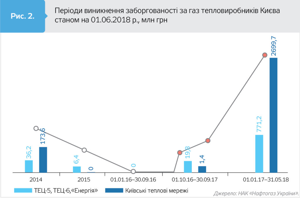 За даними ПАТ “Київенерго”, борг споживачів за тепло і гарячу воду досягає 4,8 млрд грн. Найбільша заборгованість за тепло, опалення і гарячу воду у населення і житлово-експлуатаційних організацій (ЖЕО) столиці — 3,2 млрд грн. Борги державного та місцевого бюджетів становлять 190 млн грн, інших споживачів — 349 млн грн. Борги державного бюджету з компенсації пільг та субсидій, а також різниця в тарифах досягли майже 1 млрд грн.