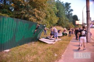 У Києві на вулиці Амосова протестувальники знесли паркан навколо ділянки на території парку відпочинку Протасів Яр, де почалася вирубка дерев. За даними активістів, паркан був побудований з метою будівництва готельного комплексу, повідомляє LB.ua. Відзначається, що представниками забудовника вже були спиляні десятки дерев.