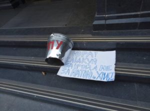 Генеральному прокурору України Юрію Луценку громадські активісти сьогодні, 7 вересня, під приміщення ГПУ принесли відро без дна.