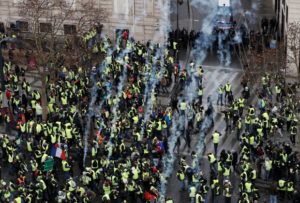 Російські медіа також показали відео – широко поширене у французьких соціальних мережах – про те, як поліція в південно-західному місті Пау знімає свої шоломи, що було розцінено як знак солідарності з протестувальниками. Місцева поліція і журналісти, присутні на місці події, заявили, що це не відповідає дійсності – поліцейські зняли шоломи, щоб поговорити з “жилетами”, але після наділи їх назад.