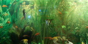 Інші акваріуми виставки демонструють різновиди водної флори, котрі гармонійно співіснують з спеціально підібраними видами риб. Мешканці акваріумів – це золоті рибки, поліптеруси, піранії та ін. Золоті рибки як декоративна форма золотого карася були виведені 1500 років тому у Китаї. Спочатку це були рибки тільки для ставків імператорів, потім вони стали розводитись в ставках іншої знаті. Тому золоті рибки вважаються символом достатку. Піранії – хижих піраній в цій сім`ї біля 40%. Решта досить миролюбні і харчуються водною рослинністю. Спровокувати хижаків на напад може запах крові. Хижі піранії особливо небезпечні у період нересту, коли риби охороняють свою ікру.