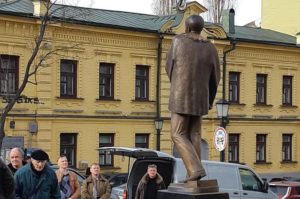 «Знаменитий шансоньє народився в будинку на Володимирській, навпроти Золотих Воріт. Закінчив Четверту київську гімназію на Великій Васильківській», – зазначила вона. Пам’ятник вона сфотографувала зі спини, щоб не «порушувати інтригу».