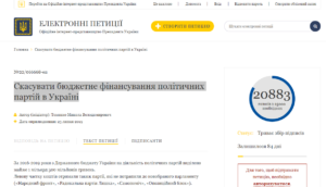 Петиція команди Громадського руху « Рідна країна» про скасування або призупинення бюджетного фінансування політичних партій за 9 днів набрала більше 20 тисяч голосів! ЗАЛИШИЛОСЯ ще 5 тисяч голосів!