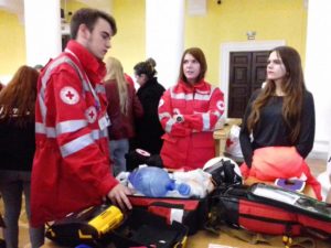 На заході було багато студентів, яким розповіли про напрямки роботи організації. А саме: навчання навичкам першої допомоги; загони швидкого реагування, які працюють пліч о пліч з рятувальниками; психо-соціальна підтримка ( робота у геріатричних пансіонатах, реабілітаційних центрах та сиротинцях); медико-соціальна допомога.
