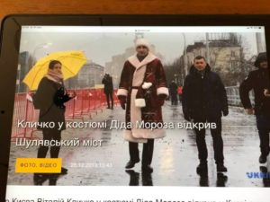 28 грудня 2019 – Дід Мороз, перепрошую Віталій Кличко, відкриває реконструйований Шулявський міст.