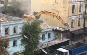 На вулиці Саксаганського, 76 у центрі Києва знесли 150-річну садибу. Зараз роботи проводять без паспорта, пише в соцмережах мешканка однієї з центральних вулиць міста.