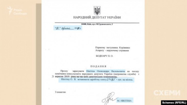 Так, чоловік депутатки Марини Нікітіної, якого вона призначила своїм помічником у парламенті, отримував зарплату з держбюджету впродовж півроку. Відповідно до документів з Верховної Ради, загалом вийшло близько 95 тисяч гривень. У березні 2020-го Нікітіна попросила його звільнити з цієї посади.