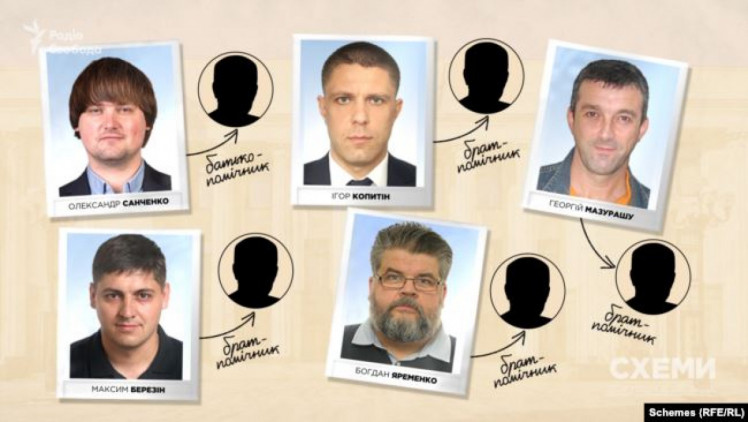 У кількох нардепів помічниками були призначені їхні брати: зокрема, у Олександра Скічка, Миколи Кириченка, Богдана Яременка, Ігоря Копитіна. Брат Копитіна згадувався на сайті парламенту також і як радник підкомітету з питань оборонної промисловості та технічної модернізації Комітету з питань національної безпеки, оборони та розвідки, який очолює його брат-депутат – хоча у коментарі журналістам Ігор Копитін це заперечував, а за кілька днів повідомив, що звільнив брата з посади помічника.