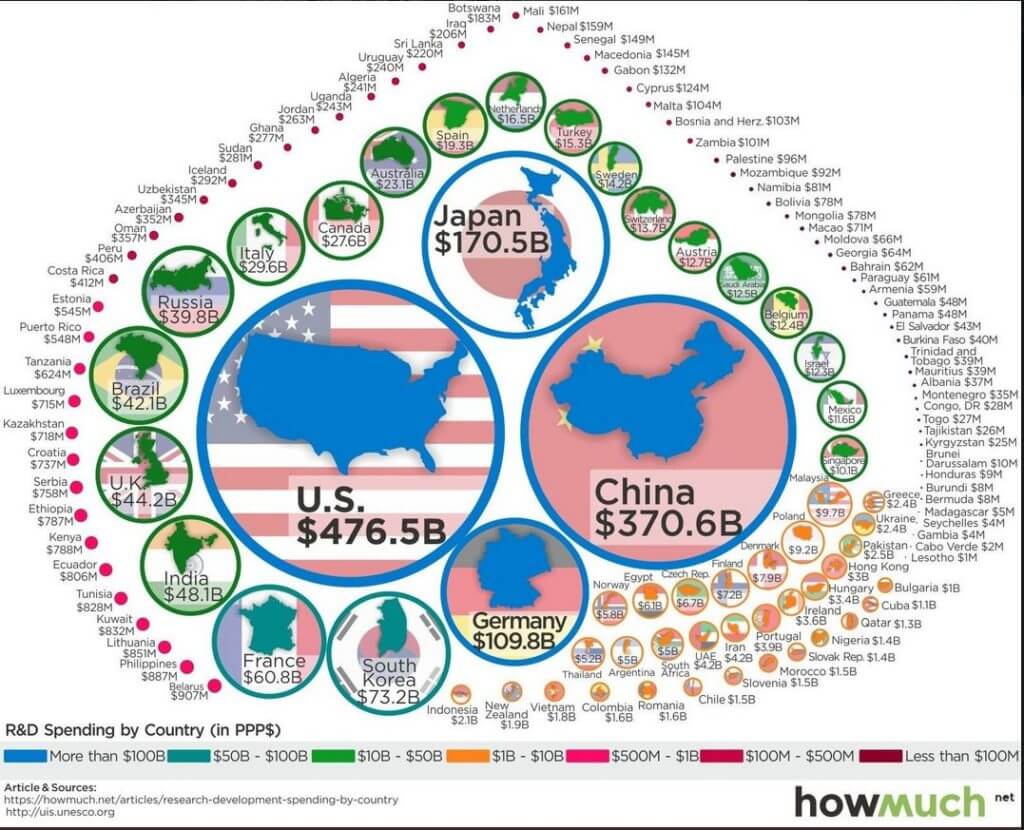Кошторис України на наукові дослідження становить $2,4 млрд. У рейтингу вона розташувалася між Пакистаном ($2,5 млрд.) та Грецією ($2,4 млрд.).