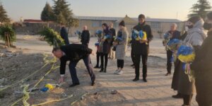 Працівники посольства поклали квіти на місці падіння українського літака та вшанували пам’ять жертв хвилиною мовчання.