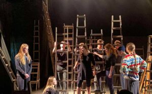 У виставі немає ані конкретного часу, ані місця дії. Територія абстрактна. Таким чином режисер підкреслює, що нічого не змінюється: таке було, є і буде завжди. Єдиний реквізит, який є на сцені, — драбини.