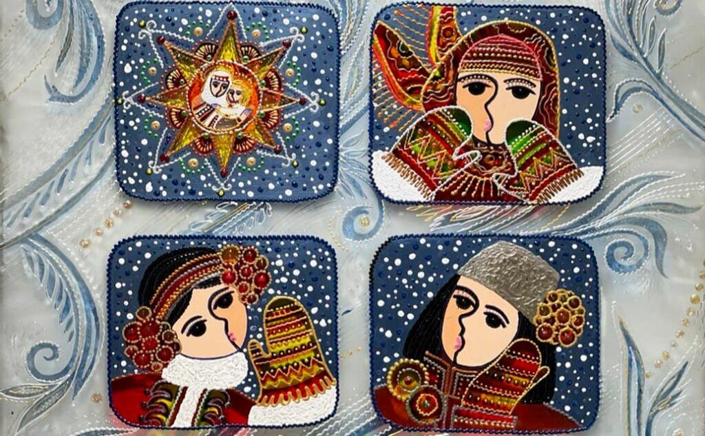 Роман та Наталія Юсипчуки передають у своїх роботах своє відчуття, бачення і розуміння Світу: «Як не дивись на Всесвіт, як не крути кіно, спочатку було Трипілля, а потім було Різдво», відтворюючи їх у малярстві на склі.