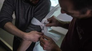 Фахівці з надання першої допомоги з Великобританії вважають, що за сильної артеріальної кровотечі спочатку потрібно спробувати зупинити кров прямим натисканням. Якщо кров вдається зупинити – потрібно тримати щонайменше 10 хвилин, щоб дати їй час згуститися. Потім можна накласти пов’язку, але якщо вона просочиться кров’ю – варто подумати про інший спосіб зупинки крові.