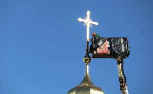 Фахівці розпочали з повернення на купол Трапезної церкви хреста.