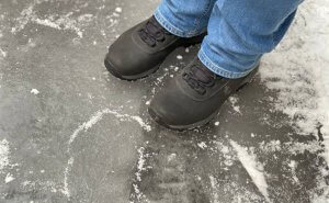- Кращими для ходьби на льоду є підошви з мікропористої або іншої м’якої основи. І звісно — без великих підборів. Якщо підошва слизька, її можна оздобити «льодоходами» (у продажу наявні різні моделі).