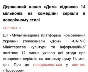 На минуло й дня від численних публікації про тотальне і цинічне БЮДЖЕТНЕ МАРОДЕРСТВО так званими мерами воюючої України, як чергові 14 МІЛЬЙОНІВ гривень платників податків пливуть в руки українсько-білоруських майстрів по створенню…новорічних комедій?!