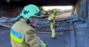 У Києві в середу, 19 червня, обвалилася пішохідна частина Повітрофлотського шляхопроводу, перекривши розташовану під ним трамвайну колію та автошлях.