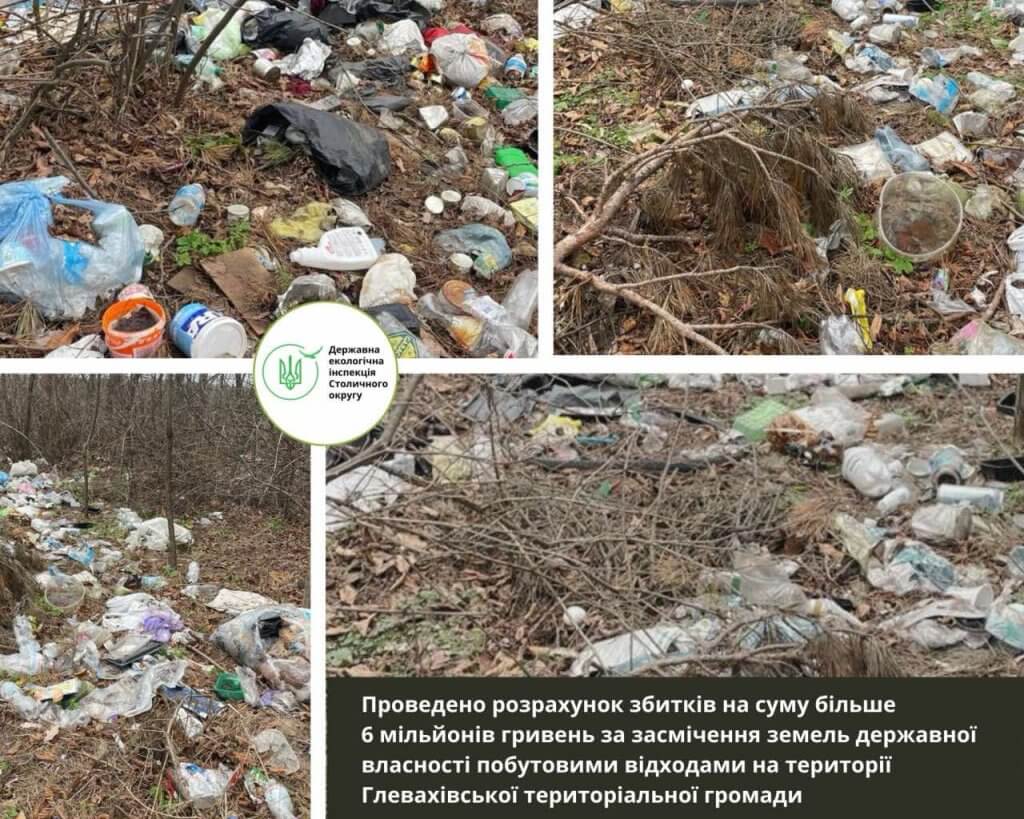 ДЕІ Столичного округу проведено розрахунок збитків на суму 6 млн 168 тис. 521 грн за засмічення земель державної власності побутовими відходами на території Глевахівської територіальної громади Фастівського району.