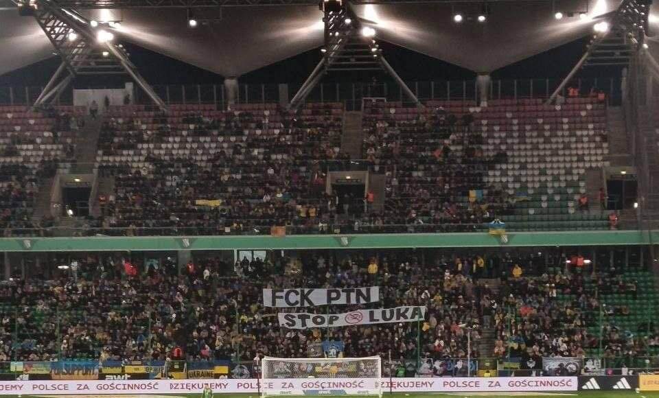 Вболівальники влаштували перформанс на матчі української збірної з плакатами проти путіна та лукашенка