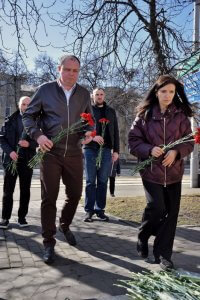 У Подільському районі Києва біля пам’ятного знаку жертвам Куренівської трагедії представники апарату районної влади разом із громадою поклали квіти та вшанували загиблих хвилиною мовчання.