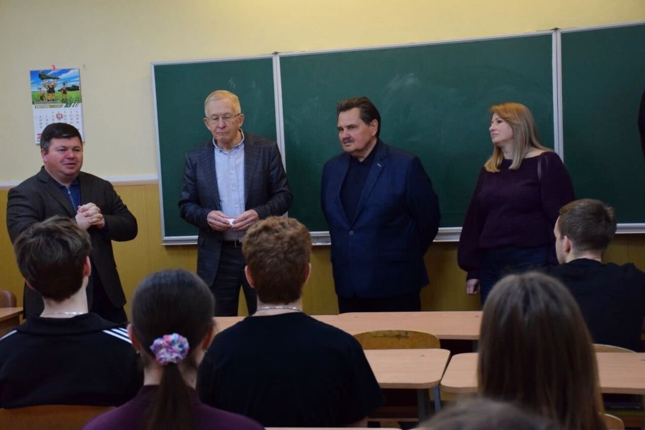 На запрошення директора ліцею Юрія Шукевича до закладу завітали знакові постаті академічної спільноти: завідувач кафедри фінансів КНУ імені Тараса Шевченка, професор Ігор Лютий, професор Олександр Рожко та доцентка Віталіна Делас. До розмови про глобальні виклики та роль інтелектуального лідерства долучився Голова Подільської РДА Володимир Наконечний та керівниця апарату Юлія Шпак.