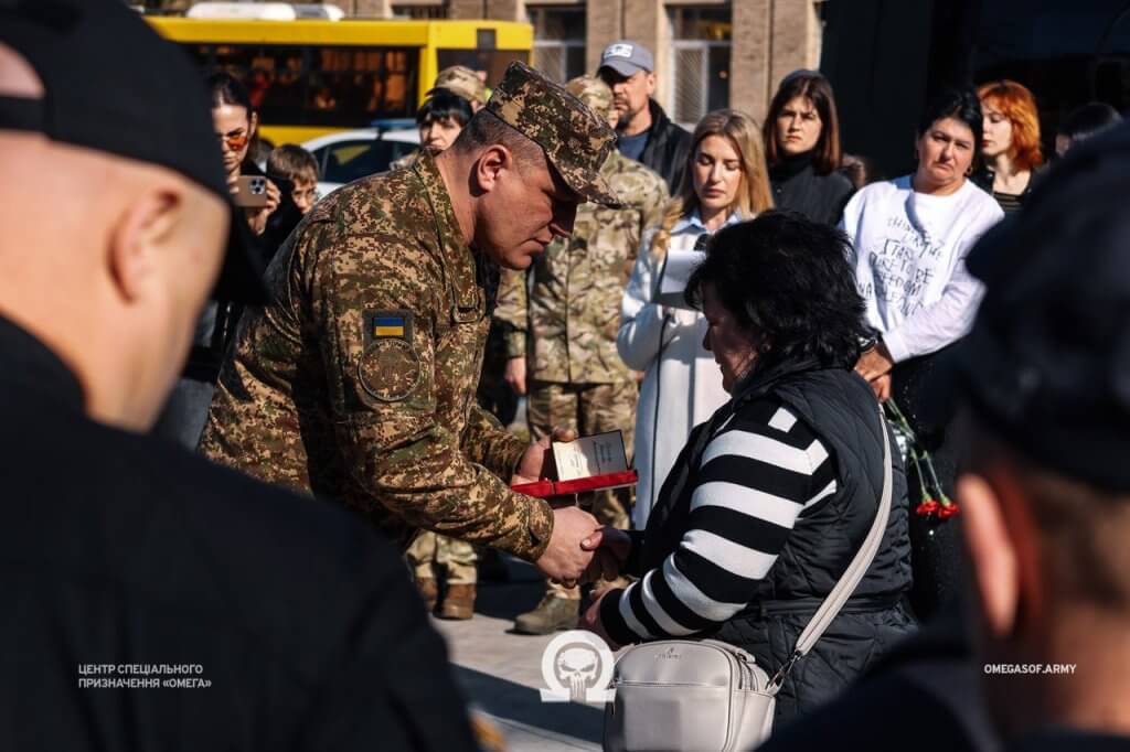 Під час заходу командувач НГУ передав державні нагороди родинам загиблих військовослужбовців. У свою чергу начальник ЦСП «Омега» подякував та відзначив осіб, які долучилися до створення меморіального знака та сприяли увіковіченню пам’яті загиблих бійців.